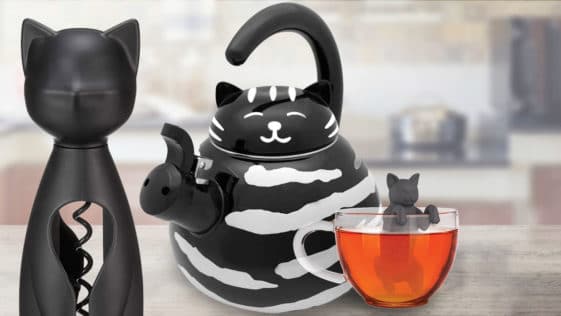 כוסות זוגיות בצורת חתול, סינר עם המון חתולים ואפילו פומפייה. מוצרי המטבח שכל אוהב חתולים ישמח להכניס הביתה. More
